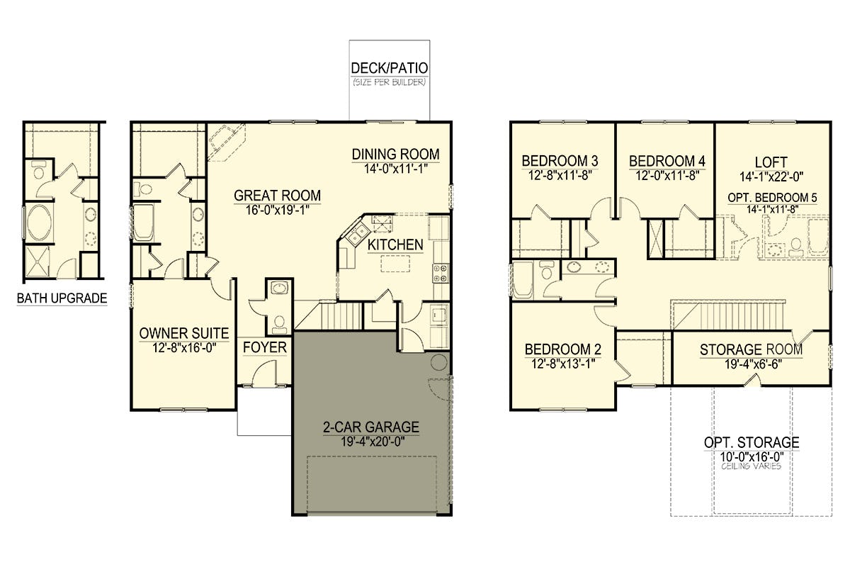 Unique First Floor Master plan. The stair case is secluded but yet in a perfect location for traffic flow. A sizable kitchen and dining area gives ample space for entertaining. Although most second floors are simple and less than exciting, this plan offers a huge loft that can be optioned into a 5th bedroom and additional bath. But the "BIG" hit is the huge finished storage room located at the top of the stair along with the secondary bedroom walk-in closets.