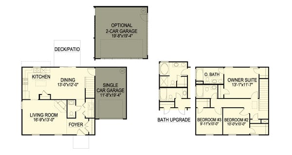 Great, efficient traditional plan. Offers a large country eat-in kitchen, secluded stairway, and a luxury owner bath upgrade. This plan also offers a two car garage option that adds eight feet to it's width but allows the home builder to offer this home in a variety of neighborhoods.